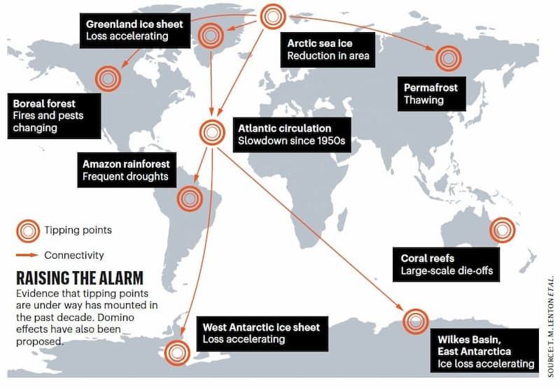 无论人类是否减少二氧化碳排放,都已经为时过晚,因为15个已知的全球气候临界点,已经有9个激活了。