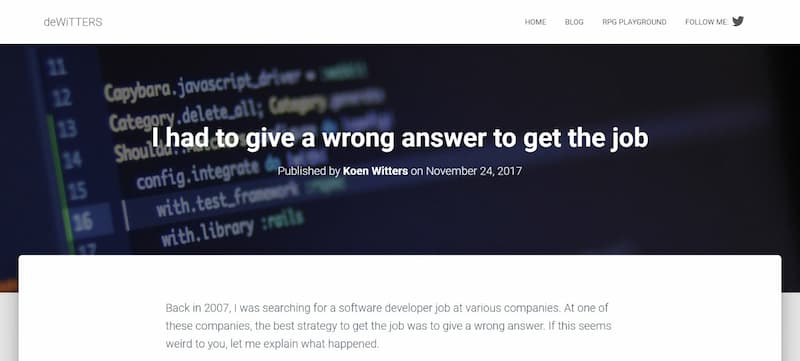 2007年,我去一家公司应聘程序员。当时,为了应聘成功,我不得不故意答错了一个问题。你可能觉得很奇怪,让我解释一下怎么回事。