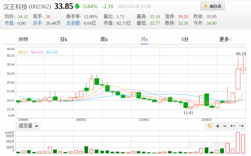 这种情绪反映在金融市场,就是"ChatGPT 概念股"被狂炒。一直微利 + 亏损的"汉王科技",就在 ChatGPT 问世后,股价从11元炒到了40元。