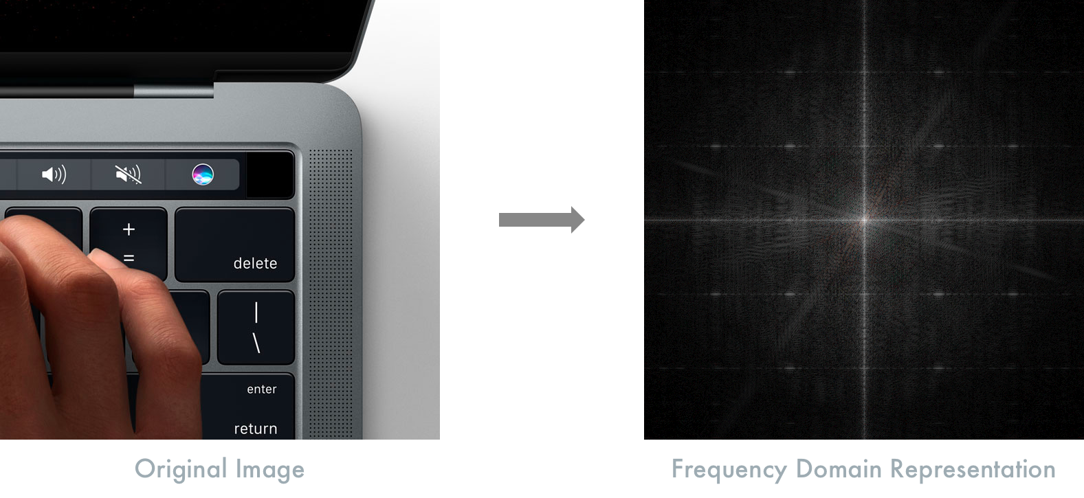 MacBook Pro 上的精细格栅在该图像的高频分量中具有很高的信息含量。细微变化的内容 = 高频成分。颜色和亮度的任何形式的渐变 - 例如渐变是该图像的低频分量。介于两者之间的任何东西都介于两者之间。如此精细的细节=高频率。柔和的渐变 = 低频率。说得通?