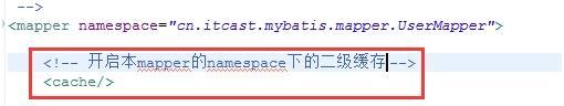 2、在映射文件中,加入以下内容,开启二级缓存: