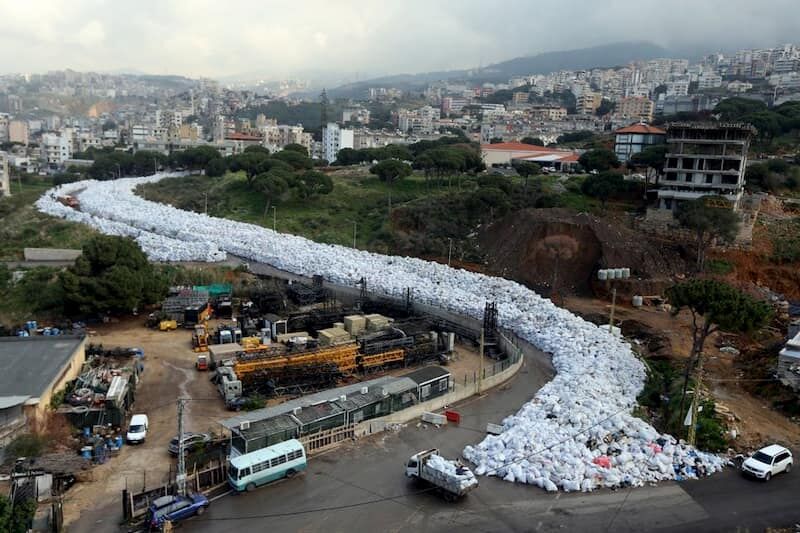 黎巴嫩首都贝鲁特,环卫工人罢工,垃圾无人清理。图片来自 Reddit。