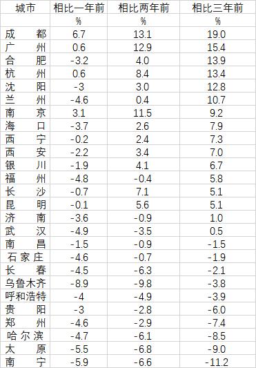 近三年26个省会城市二手房价格变化那些房价一直没有下跌,反而还在上涨的城市,是不是发展的更好呢?我觉得是这样的。相比五年前,大多数城市还是上涨的。经常有人说,中国股市永远30
