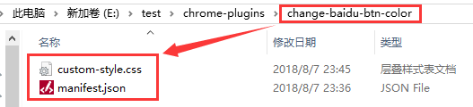两个文件放在同一个文件夹change-baidu-btn-color下,目录结构如下: