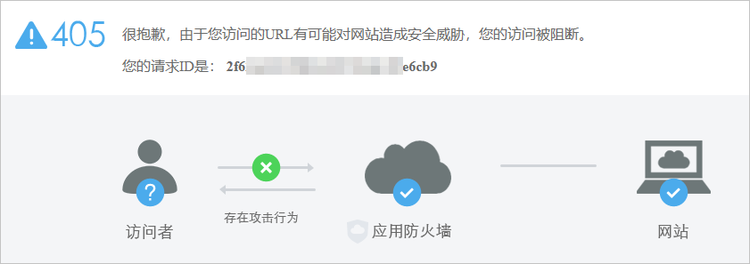 网站接入Web应用防火墙后,出现405阻断页面或者HTTP返回码为405。