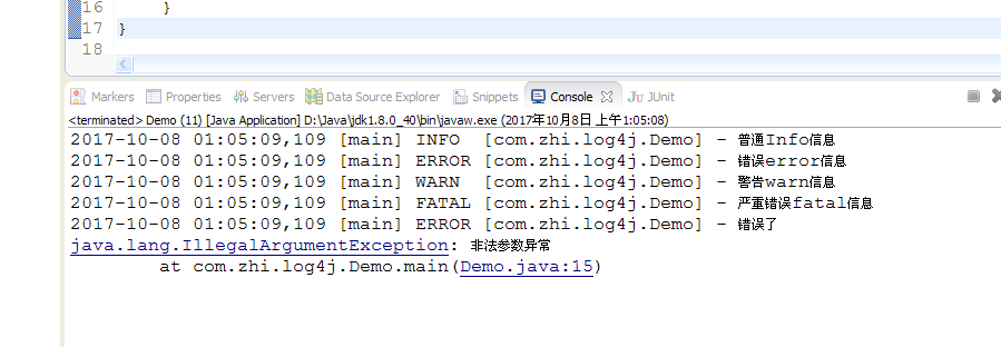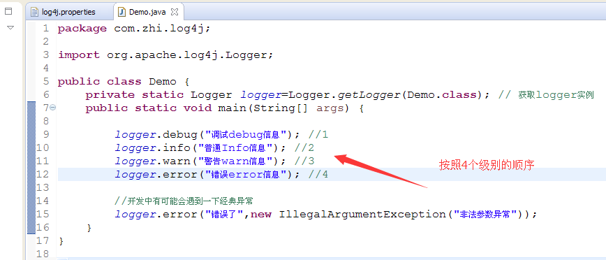 private static Logger logger=Logger.getLogger(Demo.class); // 获取logger实例