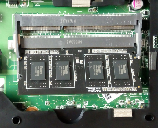 将内存条斜45度插入内存插槽处,然后将内存条往下按,也就是将内存条按成水平状,笔记本内存插槽出也有两个卡扣用来卡内存条,听到“咔”的声响后,说明内存条被卡进,可以使用。