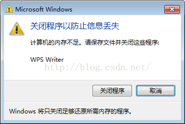 最近由于同时打开的程序比较多,Windows 7 频繁提示:计算机的内存不足,如下图: