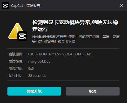 检测到显卡驱动模块异常,剪映无法稳定运行