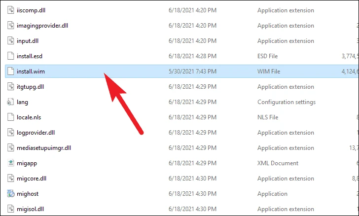 然后,在 Windows 11 ISO 镜像的‘ sources’文件夹中找到 install.wim 文件,并使用 Ctrl + c 快捷键复制该文件。或者,您也可以右键单击该文件,并从上下文菜单中选择“复制”选项。