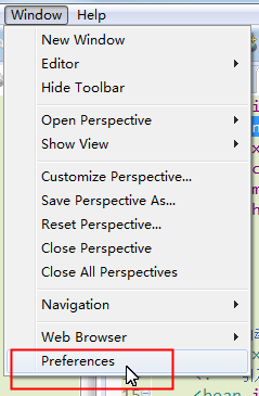 1、选择 eclipse 的WIndows菜单》Preferences 预设