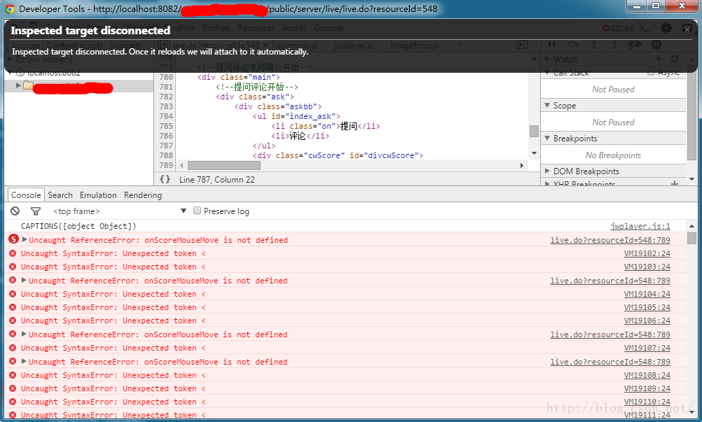 由于没办法通过浏览器的调试功能定位到实际的错误位置,所以只能通过二分法增删代码进行查找,