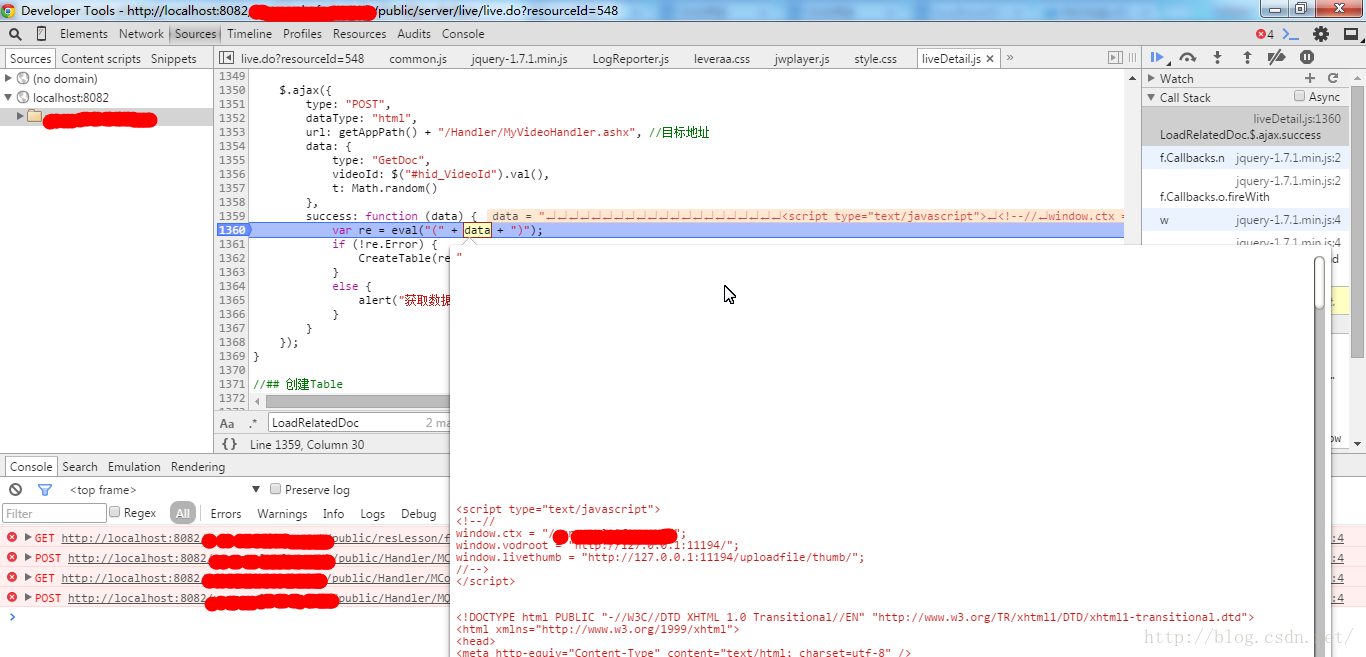 最后定位到错误原因居然是“eval”方法引起的,如下图: