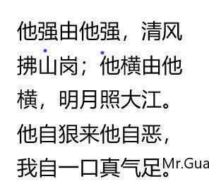 第一句:他强任他强,清风拂山岗。在整个市场或者手里面的个股,强势上涨或者下跌的时候,开空调的时候风速度不能开大了,免得吹坏了脑子,去冲动的操作,顺势而为,不去做对抗,等他强完了再