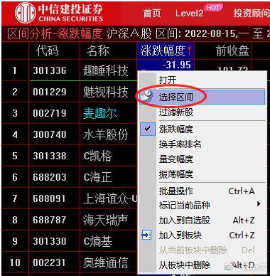 软件统计完成后,任意位置点击鼠标右键,选择区间