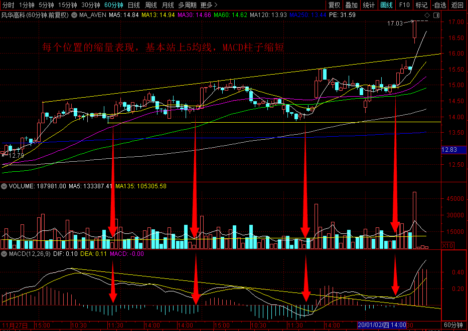 背离的化解方试背离的化解方试20200104144413每个位置的缩量表现,基本站上5均线,MACD柱子缩短