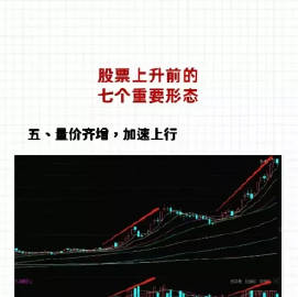 1、均线交融,一飞成龙2、地量挖坑,洗盘拉升3、量增价平,上涨在即4、低位出星,机会来临5、量价齐增,加速上行6、缩量涨停,空中接力7、三线金叉,后市不差盘中一旦出现这些形态,后市往