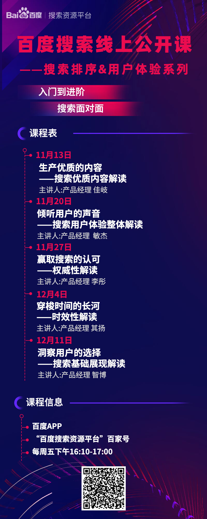 “百度搜索线上公开课“强势来袭,从入门到进阶,“面对面“解决你的各类“疑难杂症“!