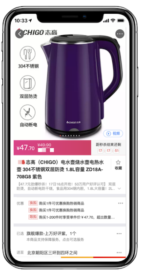 画质超清,有历史售价、优惠活动倒计时、视频展示功能,评论区有标签分类和好评度为用户提供参考