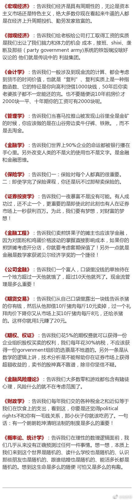 分享:一位金融系教授几年心血!专业课程的简单解释