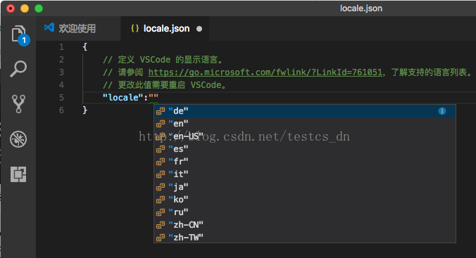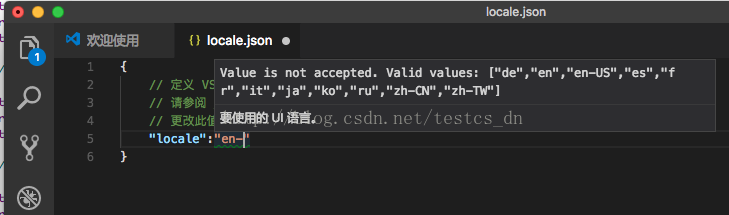 {// 定义 VSCode 的显示语言。// 请参阅 https://go.microsoft.com/fwlink/?LinkId=761051,了解支持的语言列表。// 更改此值需要重启 VSCode。"locale":"zh-CN"}修改时输入错误会提示可用的语言