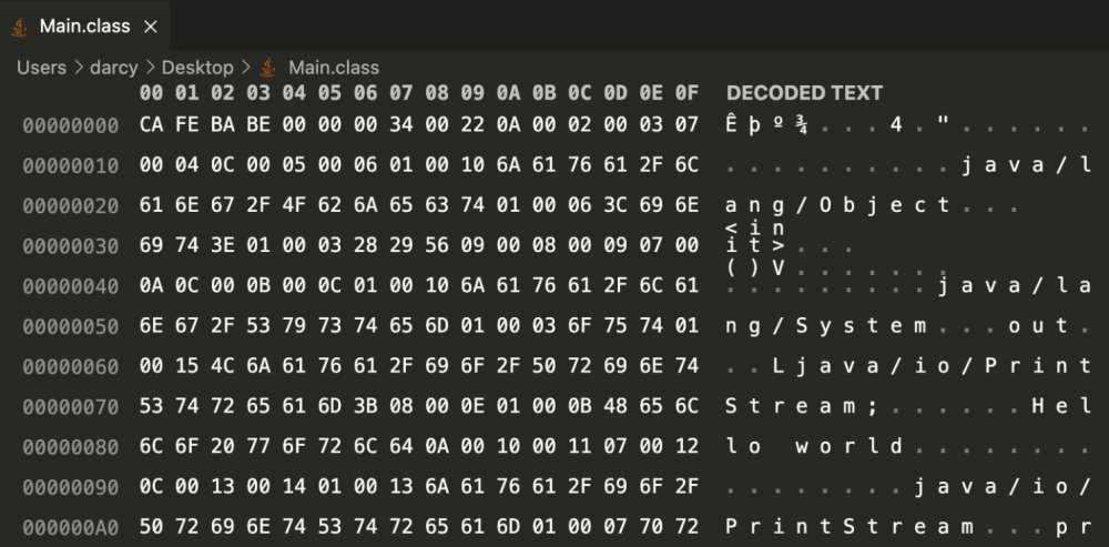 Java 反编译,一听可能觉得高深莫测,其实反编译并不是什么特别高级的操作,Java 对于 Class 字节码文件的生成有着严格的要求,如果你非常熟悉 Java 虚拟机规范,了解 Class 字节码文件中一些字节的作用,那么理解反编译的原理并不是什么问题。 甚至像下面这样的 Class 文件你都能看懂一二。