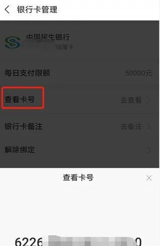 但当我查看支付宝的银行卡管理功能时,发现有支付密码的话,可以用支付宝自带的查看卡号功能获取银行卡完整卡号,太长时间没用这个功能了。