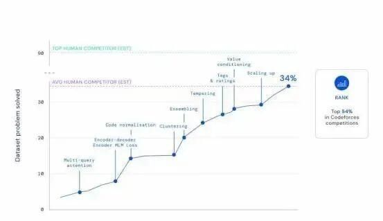DeepMind表示,AlphaCode编写计算机程序的能力已经达到非常具有竞争力的水平。在与人类程序员的比赛中,AlphaCode的排名可以达到中等水平,跻身前54%之列,标志着人类向自主编码迈出重要一步。