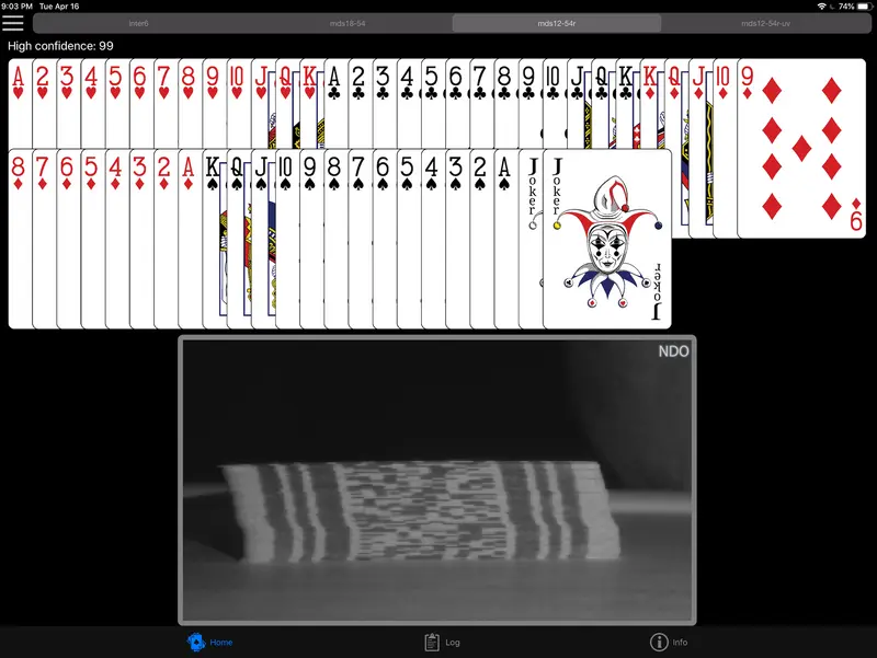 最后,他写了一个 iOS 客户端,将树莓派的扫描结果显示出来,每张牌是什么。下面就是实际的效果。