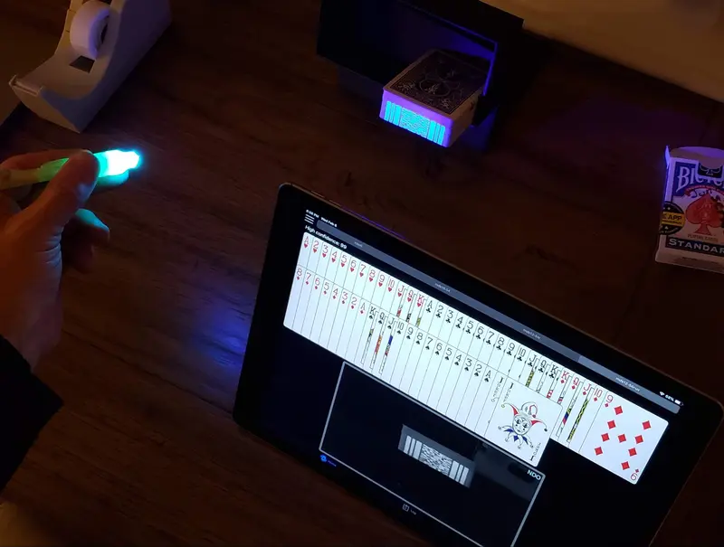 最近,有人将条形码与扑克牌结合在一起。他在每张牌的牌边印上了条形码,旁人根本意识不到,但是使用扫码器可以分辨是什么牌。为了进一步增加隐蔽性,他还用特殊墨水,将条形码隐藏起